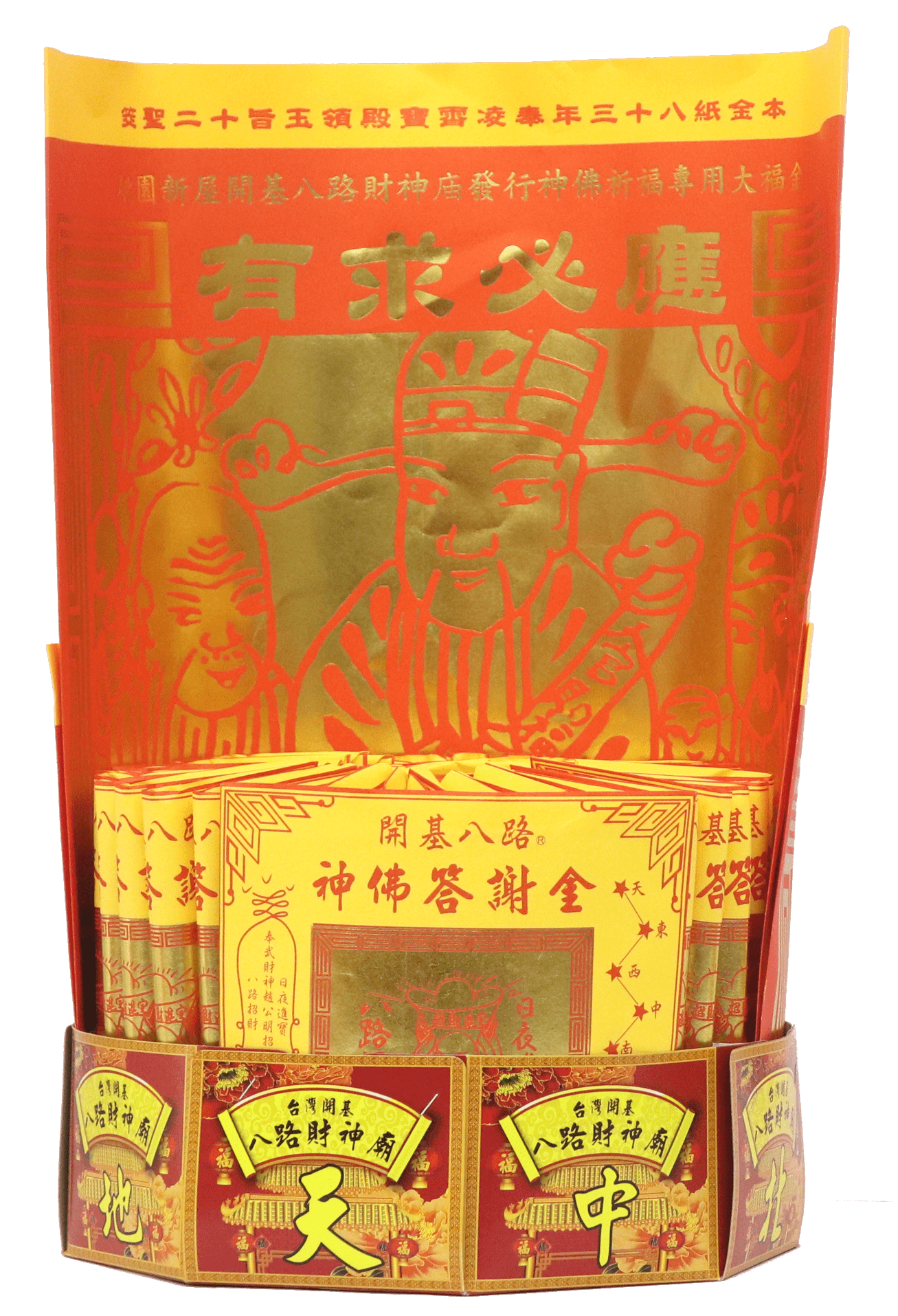 可代燒答謝金答謝家神,任何宮廟神明,並隨附一張飛天甲馬金請本廟主神八路財神爺作主送往您指定宮廟神明或家神