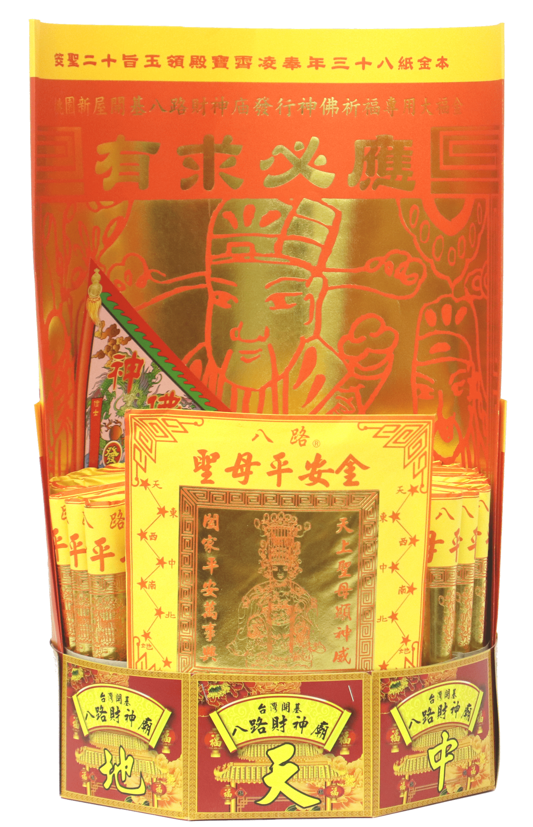 聖母娘娘(媽祖娘娘)專用金紙,去寺廟拜拜或家中家神皆可 神明專用金紙祈求平安健康,前途光明,升官發財。 內附有拜拜呼請訴文,任何人都可以學會如何拜出有求必應。